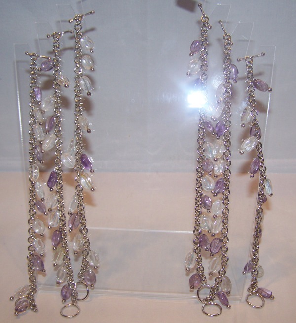 Zilver armband met Bergkristal en Amethist bedels prijs € 15,00.