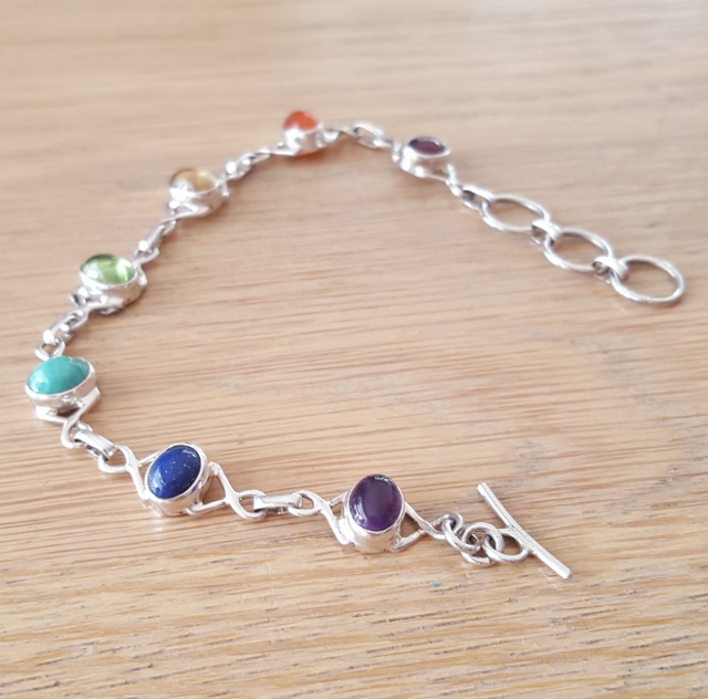 Zilver chakra armband met de steentjes: Granaat, Carneool, Citrien, Peridoot, Turkoois, Lapis-Lazulli en Amethist