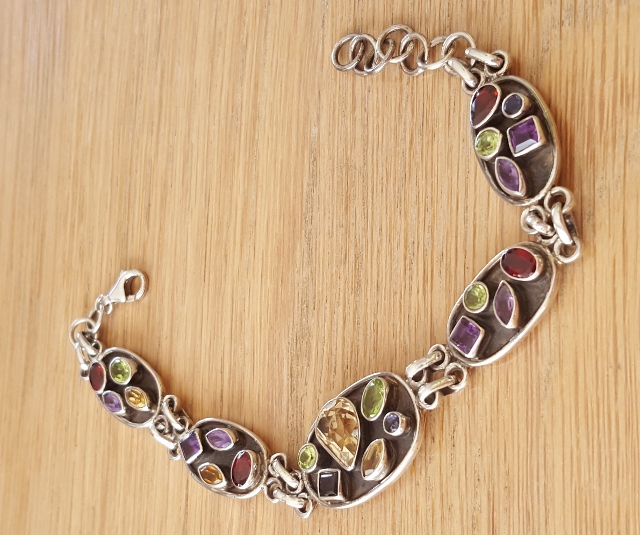 Zilver armband met een mix van Citrien, Granaat, Amethist, Peridoot, Ioliet en Topaas