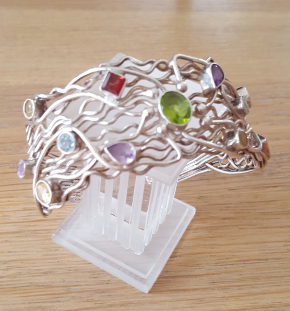 Zilver armband met een mix van Citrien, Granaat, Amethist, Peridoot, Ioliet en Topaas gefacceteerd