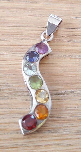 van onder naar boven Granaat, Carneool, Citrien, Peridoot, Topaas, Ioliet en Amethist