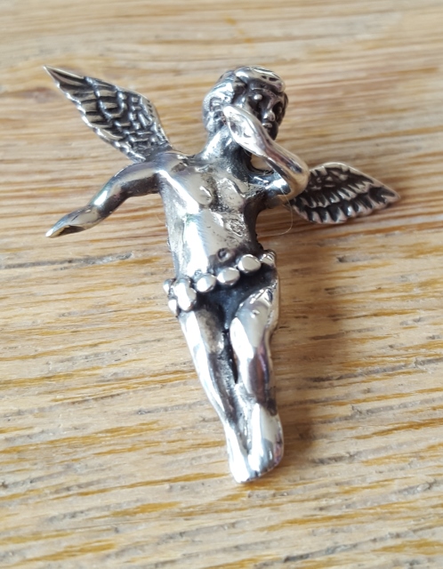 Totale lengte ca. 3 x 2.5 cm breed, hangeroog aan achterzijde ter hoogte van het hoofd en rug