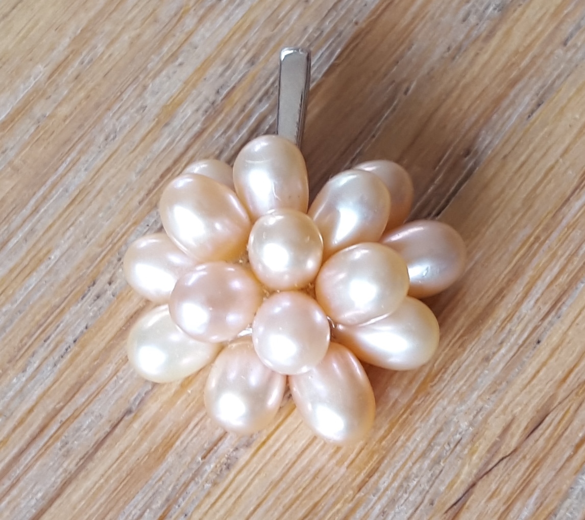 Hanger zoetwaterparel zalm-roze, doorsnee ca. 2 cm excl. hanger, totale lengte ca. 3cm