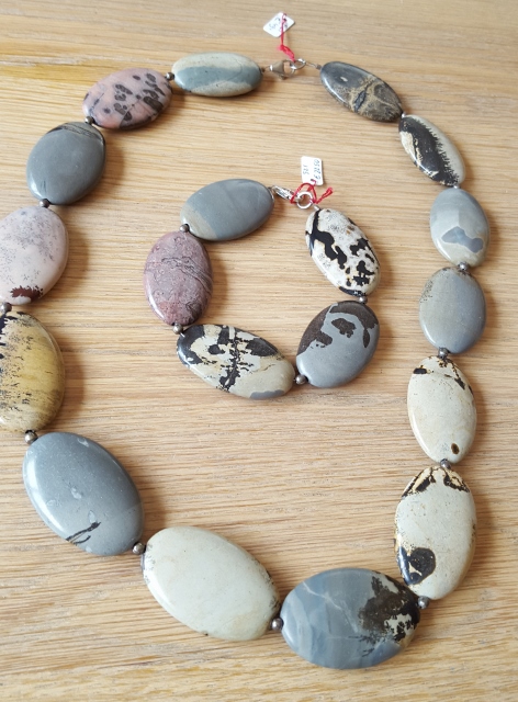Polychroomjaspisketting met zilver slotje.  Prijs € 49,00 Lengte is 61 cm, kan eventueel korter gemaakt worden.