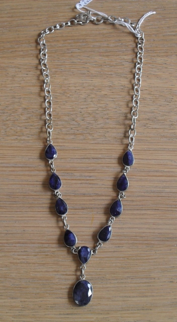 Ketting Saffier look, Blauwe Aventurijn bijgekleurd, verzilverd