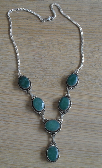 Ketting Groene Aventurijn bijgekleurd voor smaragd look, verzilverd