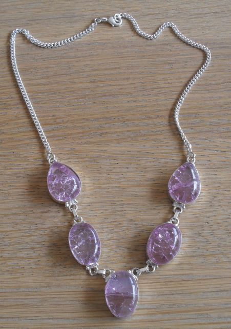 Manmade Bergkristal ingekleurde ketting roze-lila verzilverd