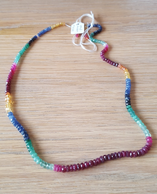 Robijn-Smaragd en Saffier (blauw en geel) gefacceteerde ketting met zilver slotje (dat er aangemaakt wordt voor de juiste maat