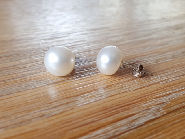 Oorbellen zoetwaterparel wit, doorsnee ca. 1 cm zilver stekers