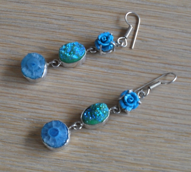 Oorhangers Drusy Kwarts gekleurd blauw