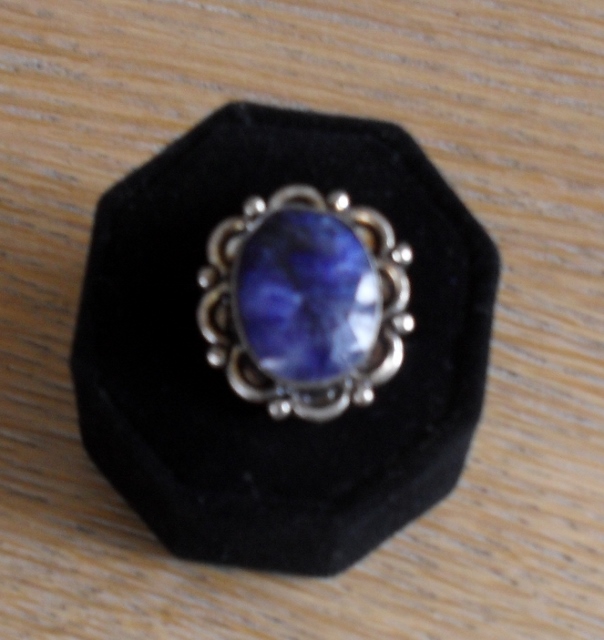 Ring Aventurijn blauw bijgekleurd voor saffier look, verzilverd