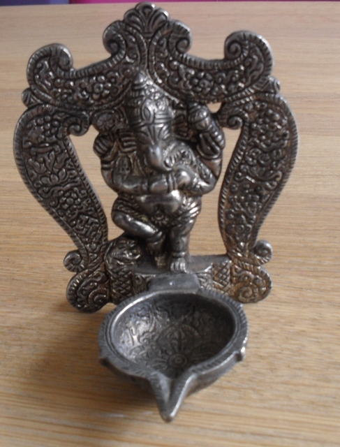 wierookhouder met boeddha zilverkleurig metaal Ganesha voor korrel en kegelwierook en stokjes ca. 9 x8,5 x 11 (hoogte) cm