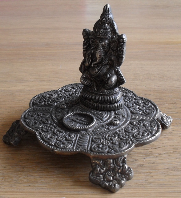 wierookhouder met boeddha zilverkleurig metaal Ganesha ca. 13,5 x 10 cm voor kegels en stokjes